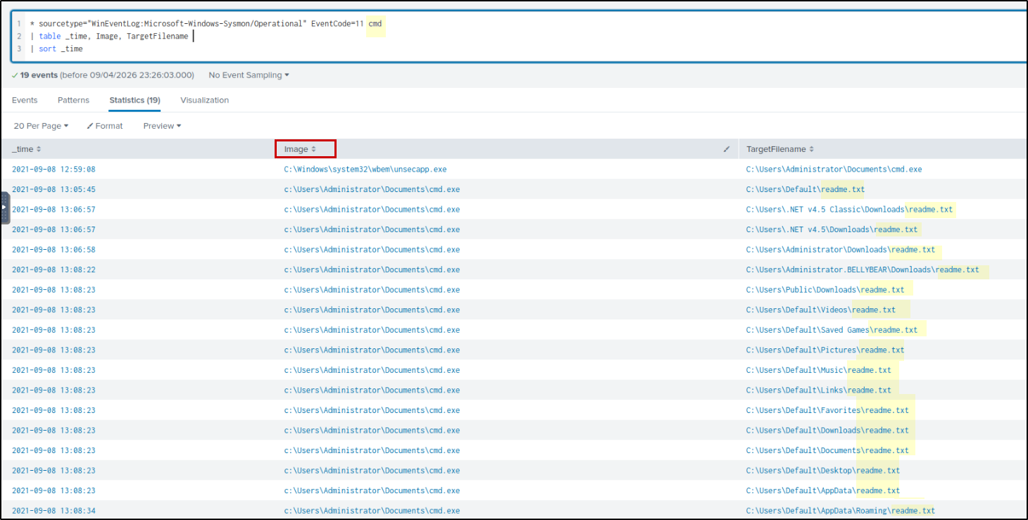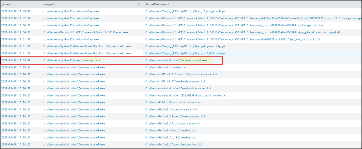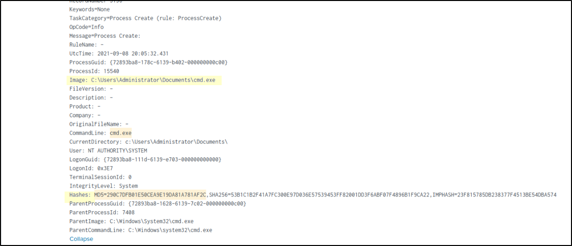 * Image="C:\\Users\\Administrator\\Documents\\cmd.exe" EventCode=1